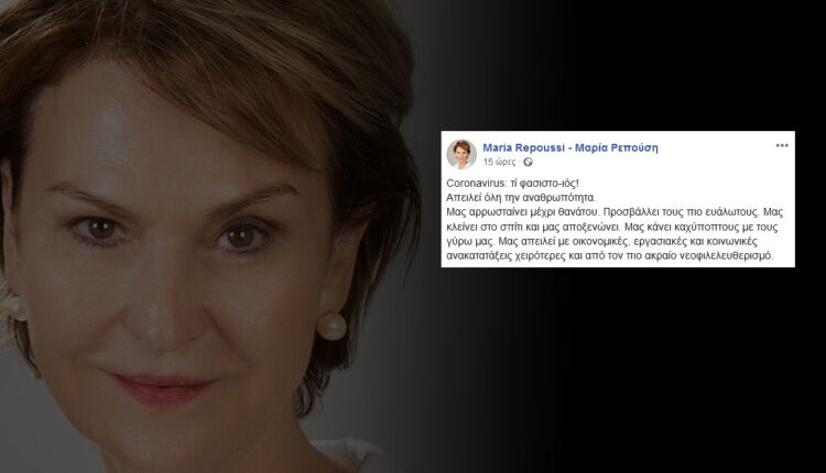 Η ανάρτηση της Μαρίας Ρεπούση στο facebook για τον κορωνοϊό.
