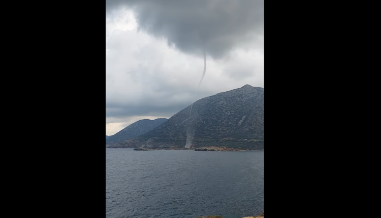 Ο υδροστρόβιλους όπως φαίνεται σε βίντεο που αναρτήθηκε από την Πολιτική Προστασία της Περιφέρειας Κρήτης «στροβιλίζεται» πάνω από τα νερά δημιουργώντας μια άκρως εντυπωσιακή εικόνα.