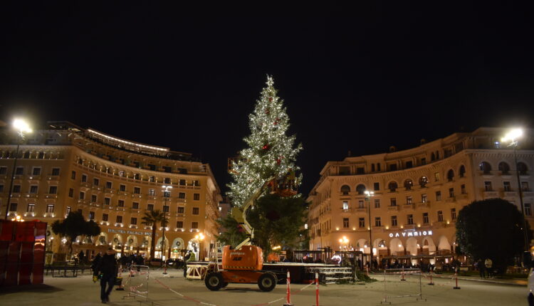 Ο Δήμαρχος Θεσσαλονίκης Κωνσταντίνος Ζέρβας θα φωταγωγήσει το επιβλητικό δέντρο, ύψους 18 μ., από τον Ταξιάρχη Χαλκιδικής, που έχει ήδη τοποθετηθεί στην πλατεία Αριστοτέλους.