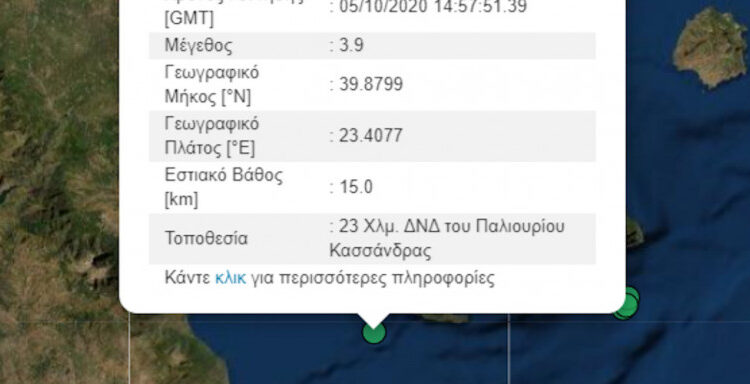 Σεισμός μεγέθους 3,9 Ρίχτερ σημειώθηκε στη θαλάσσια περιοχή του Αγίου Όρους το απόγευμα της Δευτέρας (05/10).