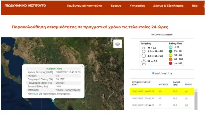 H αυτόματη λύση του Γεωδυναμικού Ινστιτούτου του Αστεροσκοπείου Αθηνών δίνει το σεισμό στα 3 Ρίχτερ, με εστιακό βάθος τα 10 χιλιόμετρα, και επίκεντρο 18 χιλιόμετρα βορειοανατολικά της Πάργας.