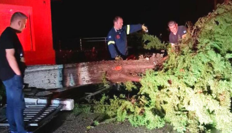 H Π.Υ. Σερρών δέχθηκε πολλές κλήσεις για πτώσεις δένδρων όπως στον Εθνικό δρόμο Σερρών-Δράμας στο ύψος του Γαζώρου.