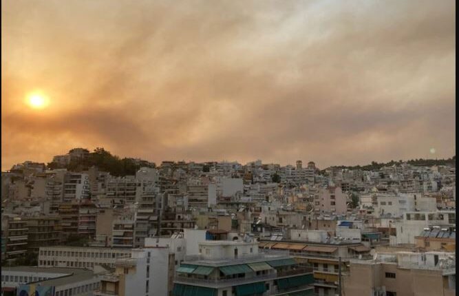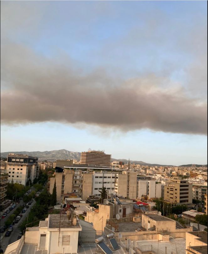 Δημιουργώντας ένα ζοφερό σκηνικό πάνω από την πόλη, από νωρίς το μεσημέρι κιόλας, οι μαύροι καπνοί είχαν καλύψει τον Αττικό ουρανό.