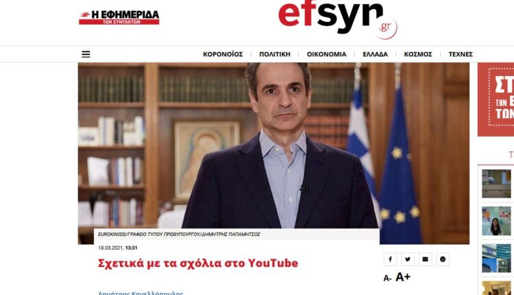 Το facebook απέρριψε μια ανάρτηση της Εφημερίδας των Συντακτών σχετικά με την απενεργοποίηση των σχολίων στο YouTube του πρωθυπουργού.