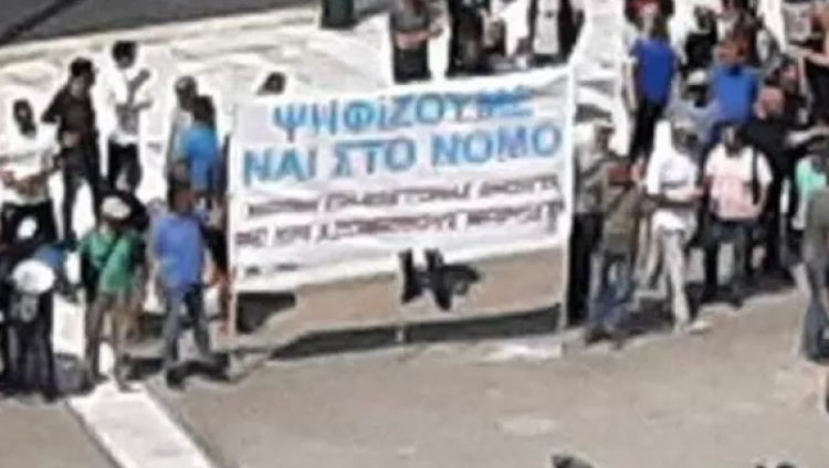 Αυτό που δεν είναι συνηθισμένο, αλλά συνέβη την Τετάρτη 31 Αυγούστου, είναι να πραγματοποιείται διαδήλωση υπέρ του νομοσχεδίου.
