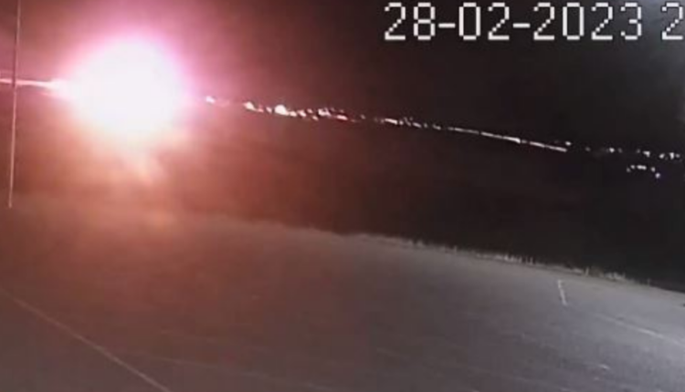 Κάμερα από κύκλωμα ασφαλείας κατέγραψε την τραγική στιγμή της σύγκρουσης των δύο αμαξοστοιχιών στα Τέμπη λίγο μετά τις 23:21, βράδυ της Τρίτης στον Ευαγγελισμό Τεμπών, λίγο πριν από τα τούνελ.