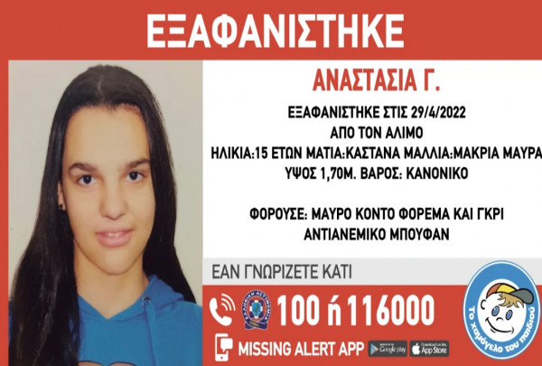 «Στις 29.04.2022, απογευματινές ώρες, εξαφανίστηκε από την περιοχή του Αλίμου, η Αναστασία Γ., 15 ετών.