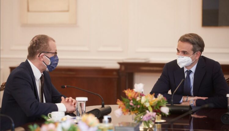 Ο Κυριάκος Μητσοτάκης συναντήθηκε στο Μέγαρο Μαξίμου με τον περιφερειακό διευθυντή Ευρώπης του Παγκόσμιου Οργανισμού Υγείας Χανς Κλούγκε, με αφορμή την υπογραφή της συμφωνίας για την επίσημη έναρξη της λειτουργίας του Γραφείου του ΠΟΥ στην Αθήνα για την ποιότητα της φροντίδας και την ασφάλεια των ασθενών.