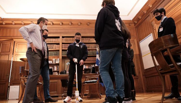 Τη μαθητική ομάδα Plaisiobots, η οποία κέρδισε το χρυσό μετάλλιο στη Διεθνή Ολυμπιάδα Ρομποτικής τον Δεκέμβριο, υποδέχθηκε στο Μέγαρο Μαξίμου ο Πρωθυπουργός Κυριάκος Μητσοτάκης.