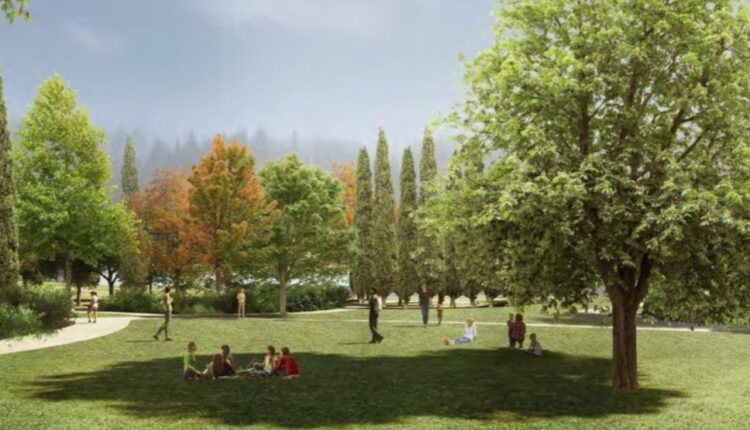 Η περιοχή επέμβασης της μελέτης περιλαμβάνει έκταση 34 στρεμμάτων και περιμέτρου 762 μέτρων. Ο ρόλος των δένδρων είναι πολύ σημαντικός στη σύνθεση του φυτικού υλικού. Φυτεύονται περίπου 450 δένδρα. Τα μονοπάτια ακολουθούν τις αρχικές χαράξεις, όπως αυτές υφίστανται και γίνονται εντοπίζονται από τα ίχνη της οριοθέτησής τους. Η δημιουργία υδατοπερατών επιφανειών συμβάλλει στην ανάπτυξη της βιοποικιλότητας διασφαλίζοντας φυσικές συνθήκες στο περιβάλλον, ευνοώντας συγχρόνως την ανάπτυξη τοπικής χλωρίδας και πανίδας.