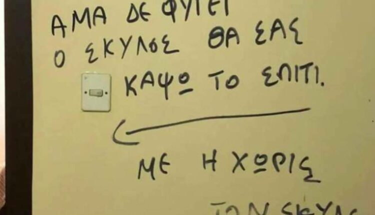 Στο σημείωμα την απειλούσε πως θα της κάψει το σπίτι, αν δεν διώξει τον σκύλο της.