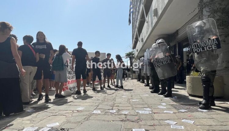 Διαμαρτυρία πραγματοποιούν αυτή την ώρα φοιτητές μπροστά στο κτήριο διοίκησης του Αριστοτελείου Πανεπιστήμιου Θεσσαλονίκης.