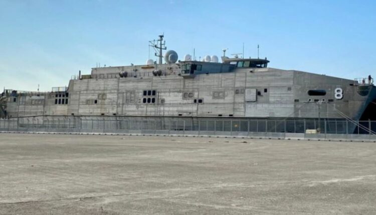 Το πλοίο, τύπου καταμαράν, εφοδιασμένο με υπερσύγχρονα ηλεκτρονικά συστήματα και δυνατότητα μεταφοράς ακόμα και μικρών υποβρυχίων, «έδεσε» στην προβλήτα στις 9 το πρωί, προερχόμενο από την Αλεξανδρούπολη. Μέσω του λιμανιού της οποίας, στις επόμενες ημέρες θα μεταφερθεί αμερικανικός στρατιωτικός εξοπλισμός καθώς και προσωπικό προς τη Βουλγαρία και Ρουμανία για τη διεξαγωγή ασκήσεων των δυνάμεων του ΝΑΤΟ.