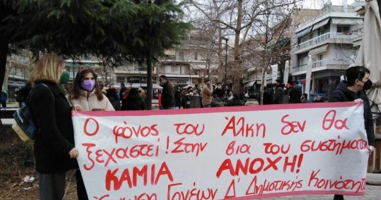 Πορεία από μέλη του Συλλόγου Γονέων του 79ου Δημοτικού Σχολείου της πόλης, στη μνήμη του 19χρονου Άλκη που δολοφονήθηκε στη Θεσσαλονίκη, πραγματοποιήθηκε το πρωί της Κυριακής, στη Χαριλάου.