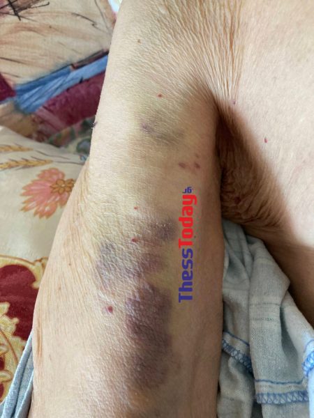 Μάλιστα, όπως φαίνεται στην φωτογραφία που έδωσε στη δημοσιότητα η ιστοσελίδα ThessToday.gr, το δεξί χέρι του υπερήλικα είναι σημαδεμένο με μεγάλες μελανιές από χτυπήματα, όπου σύμφωνα με τον δημοσιογράφο δέχθηκε κατά την προσπάθεια νοσηλεύτριας να τον δέσει στο κρεβάτι.