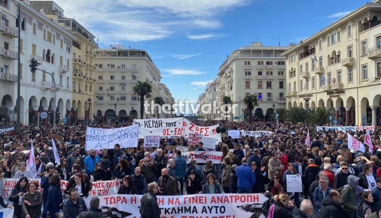 Σε εξέλιξη είναι αυτήν την ώρα μεγάλη συγκέντρωση διαμαρτυρίας στο κέντρο της Θεσσαλονίκης για την τραγωδία στα Τέμπη που στοίχισε τη ζωή σε 57 επιβάτες.