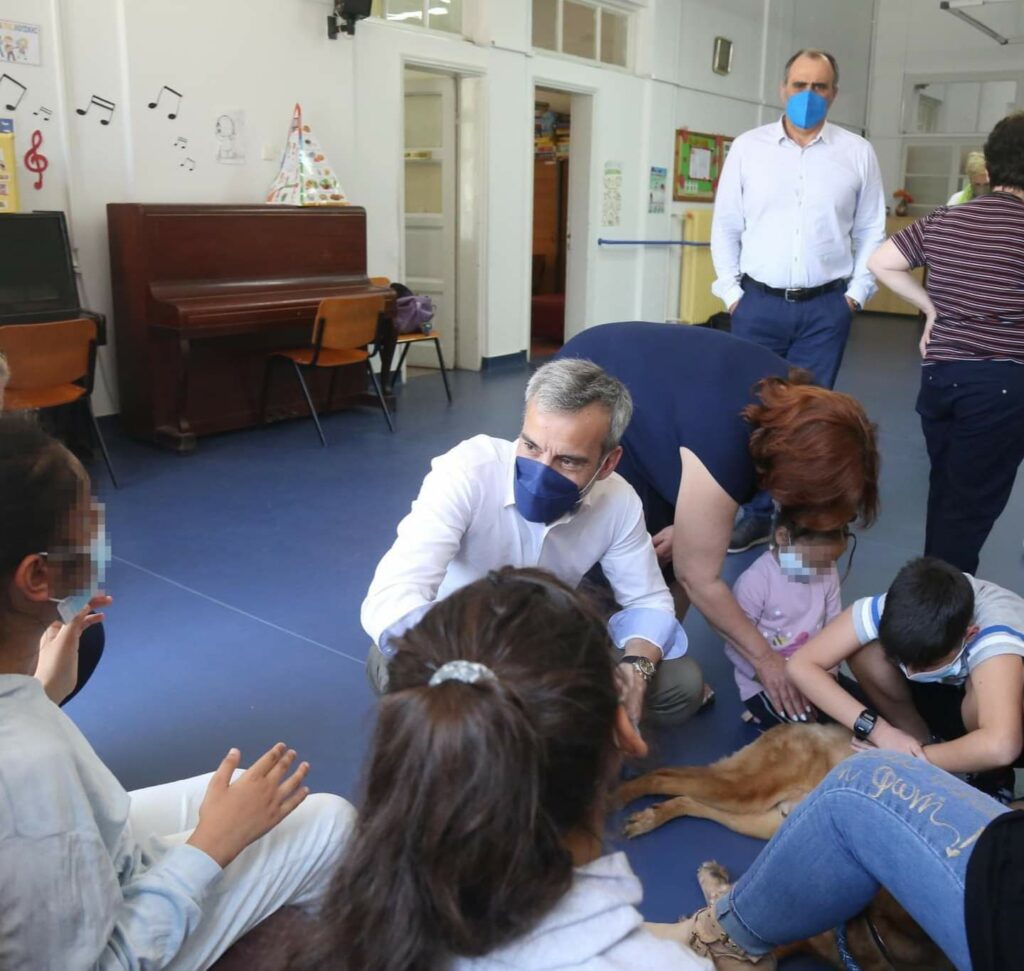 Εξάλλου, οι μικροί μαθητές του ειδικού δημοτικού σχολείου της Σχολής Τυφλών έδειξαν μεγάλο ενδιαφέρον για την ιστορία του Άξελ, που τους τη διηγήθηκε η ιδρύτρια της ΑΜΚΕ Ζω.Ε.Σ. Κατερίνα Παπαποστόλου. Ο Άξελ ήταν αδέσποτος και είχε υποστεί κακοποίηση. Όμως με τη θετική εκπαίδευση που έλαβε μετά τη διάσωσή του συμμετέχει σε φιλοζωικά προγράμματα στα σχολεία, δουλεύοντας μάλιστα κυρίως με παιδιά που φοιτούν σε σχολεία ειδικής αγωγής.