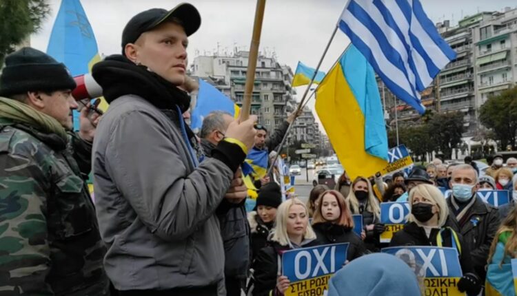 Δεκάδες Ουκρανοί συγκεντρώθηκαν λίγο μετά τις 17:00 στην Πλατεία Αριστοτέλους για να τονίσουν την αντίθεση τους στην ρωσική εισβολή , που έχει ως συνέπεια να χάνονται καθημερινά εκατοντάδες ανθρώπινες ζωές.