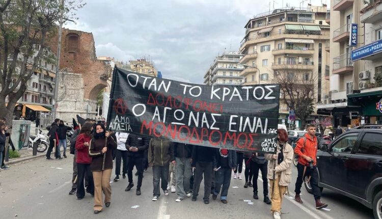 Πορεία μαθητών, φοιτητών και αντιεξουσιαστών είναι σε εξέλιξη στο κέντρο της Θεσσαλονίκης, με αφορμή τη συμπλήρωση 13 χρόνων από τη δολοφονία του Αλέξανδρου Γρηγορόπουλου.
