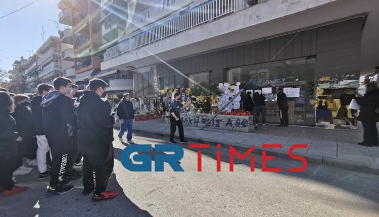 Δεκάδες παιδιά φορώντας τις τσάντες τους στον ώμο, έφτασαν στο σημείο που βρίσκεται ακριβώς απέναντι από το σχολείο τους, για να τιμήσουν τη μνήμη του 19χρονου, να αφήσουν ένα λουλούδι και να κολλήσουν στην τζαμαρία του κλειστού καταστήματος στην Οδό Γαζή τα μηνύματα τους.