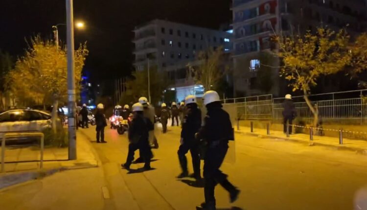 Οι αστυνομικές δυνάμεις ενισχύθηκαν με δύο διμοιρίες των ΜΑΤ, με τους νεαρούς να παραμένουν στην είσοδο.