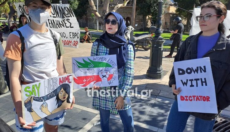 Μέλη οργανώσεων πραγματοποίησαν στο κέντρο της Θεσσαλονίκης συγκέντρωση για τα δικαιώματα των γυναικών στο Ιράν, γράφει το thestival.gr.