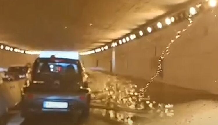 Τι ίδιο συνέβη και στην υπόγεια σήραγγα της Περιφερειακής Οδού Θεσσαλονίκης, στο ύψος της Ηλιούπολης, με τα αυτοκίνητα σχεδόν να μπαίνουν κάτω από το νερό.