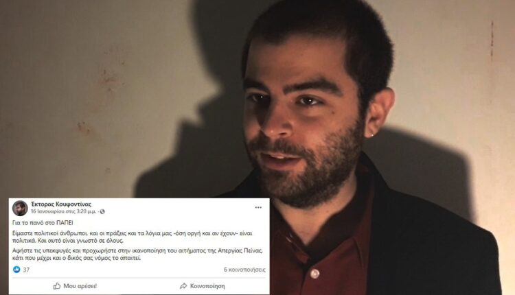 Ο Έκτορας Κουφοντίνας, γιός του πολυισοβίτη Δημήτρη Κουφοντίνα, με ανάρτησή του στο Facebook, φαίνεται να δείχνει τη στήριξή του στο χυδαίο πανό που αναρτήθηκε στο Πανεπιστήμιο Πειραιώς για τον πατέρα του, που περιελάμβανε ανατριχιαστική φράση για τον Μπακογιάννη.