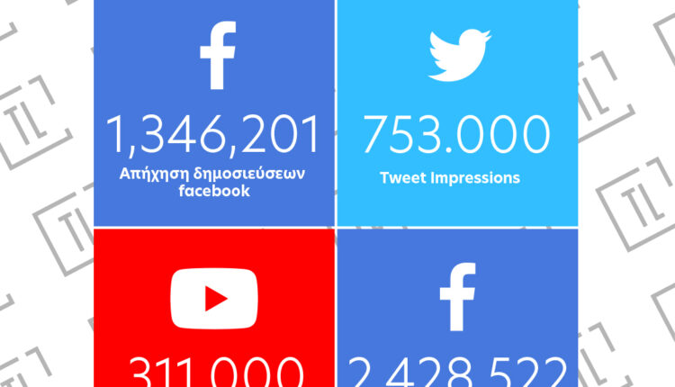 Η απήχηση των βίντεο στο Facebook αγγίζει τα 2.428.522, ενώ η απήχηση των δημοσιεύσεων το 1.346.201.