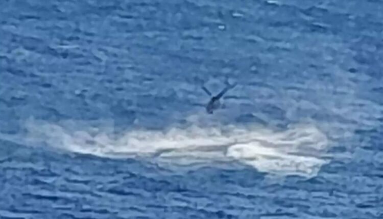 Ο πιλότος για να «ξεκολλήσει» το ουραίο από τη θάλασσα ενεργοποίησε προωθητική κίνηση. Το ουραίο ξεκόλλησε απότομα και από τα πολλά «γκάζια» έγειρε απότομα η μούρη αυτή τη φορά στη θάλασσα. Το ελικόπτερο άρχισε να χτυπάει το στροφείο του στην θάλασσα και κάθε πτερύγιο έγινε κομμάτια.
