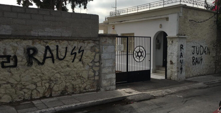 Άγνωστοι έγραψαν με σπρέι τη φράση «Εβραίοι δρόμο» στα γερμανικά και υπέγραψαν με τα αρχικά των SS στον τοίχο του νεκροταφείου, δίπλα από την κεντρική είσοδο Οι αστυνομικές αρχές διενεργούν έρευνες για τον εντοπισμό και τη σύλληψη των δραστών.