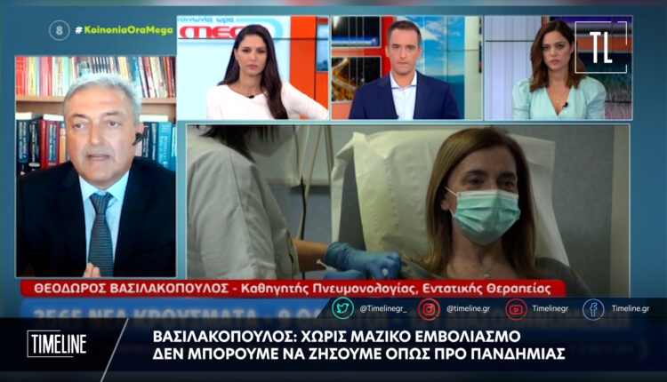 Δεν μπορούμε να ζήσουμε τη ζωή που ζούσαμε πριν την πανδημία εάν δεν εμβολιαστούμε αθρόα και μαζικά» δήλωσε στην «Κοινωνία Ώρα MEGA» o καθηγητής Πνευμονολογίας και Εντατικής Θεραπείας, Θεόδωρος Βασιλακόπουλος.