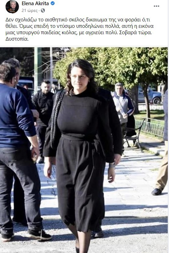 Υπενθυμίζεται πως πριν λίγες ημέρες η Έλενα Ακρίτα είχε επικριθεί έντονα για τις αναρτήσεις της για την υπουργό Παιδείας Νίκη Κεραμέως.