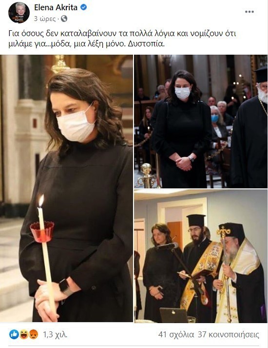 «Ξαναχτύπησε» με αιχμηρό σχόλιό της στο facebook η Έλενα Ακρίτα, αυτή την φορά για την σύζυγό του πρωθυπουργού Μαρέβα Γκραμπόφκσι Μητσοτάκη.