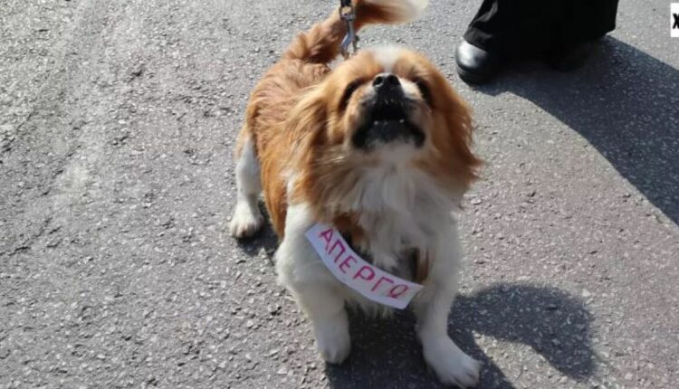 Ένας μικρόσωμος σκύλος έκλεψε την παράσταση στην Ξάνθη καθώς ήταν…απεργός και βγήκε να «διαδηλώσει» με τον υπόλοιπο κόσμο.