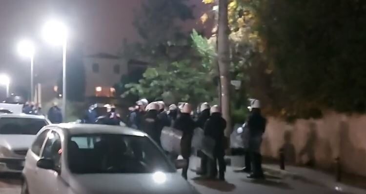 Στην οδό Ευωνύμου, οι συγκεντρωμένοι επιτέθηκαν στην αστυνομία με πέτρες και αμέσως μετά τράπηκαν σε φυγή.
