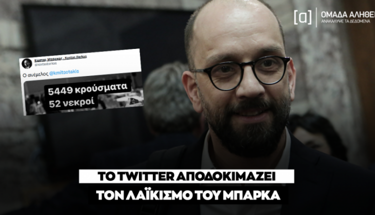 Αντιδράσεις στο twitter προκάλεσε ανάρτηση του βουλευτή του ΣΥΡΙΖΑ, Κώστα Μπάρκα, ο οποίος σε μία προσπάθεια να λαϊκίσει, ανήρτησε φωτογραφία του Πρωθυπουργού, παραθέτοντας από πάνω τον αριθμό νεκρών και κρουσμάτων από κορωνοϊό.