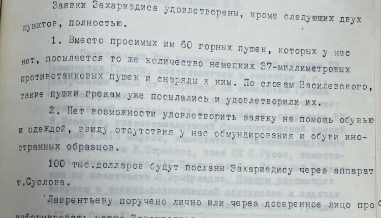 Αποχαρακτηρίστηκε έγγραφο στη Μόσχα που “δείχνει” ότι η ΕΣΣΔ προμήθευε με όπλα τους κομμουνιστές στην Ελλάδα ενώ η χώρα βρισκόταν σε εμφύλιο.