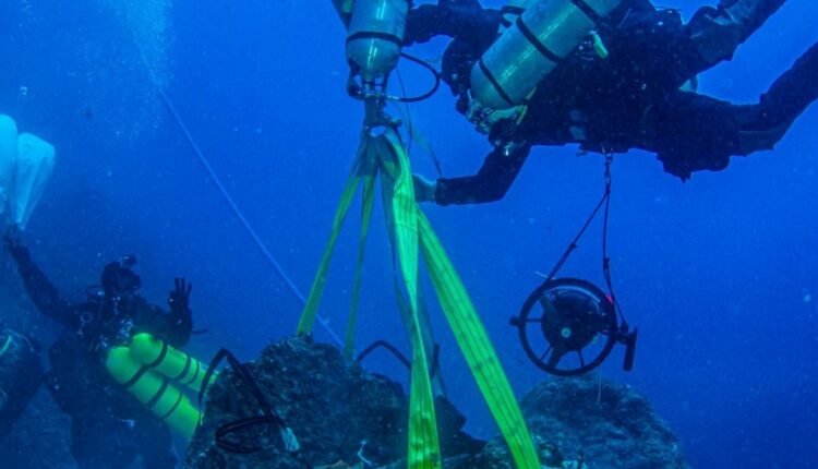 Σύμφωνα με την ανακοίνωση, η αποστολή ξεκίνησε με την ανέλκυση ογκωδών βράχων βάρους πολλών τόνων, οι οποίοι κάλυπταν τμήμα του ναυαγίου.