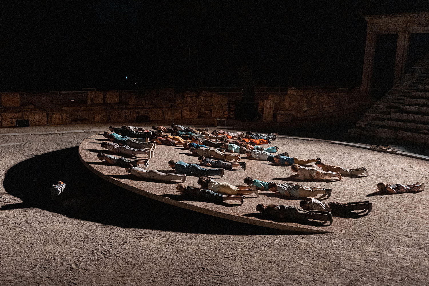 Το κοίλον και η ορχήστρα ενώνονται για να «συμμετάσχουν» σε μια κοινή συζήτηση για την ήττα, τη δυσκολία της παραδοχής της και την αμηχανία της συνέχειας, με τη συμμετοχή εθελοντών που εισέρχονται σταδιακά στον χώρο, συνθέτοντας μια «κοινωνία» που αναζητά το νήμα της ύπαρξης μετά την καταστροφή, σαν αντικατοπτρισμός της παρούσας ιστορικής συγκυρίας.