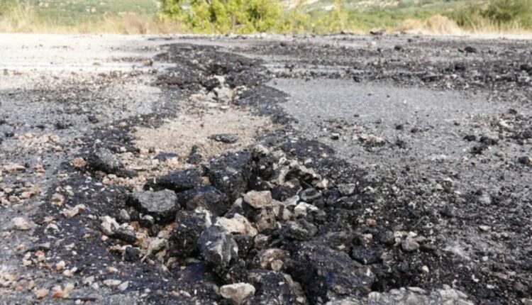 Στις φωτογραφίες καταγράφεται το οδόστρωμα στην τοποθεσία Λανού στον οδικό αξονα Αργοστόλι -Σαμη όπου έχει υποστεί ζημιές από πτώση κεραυνού.