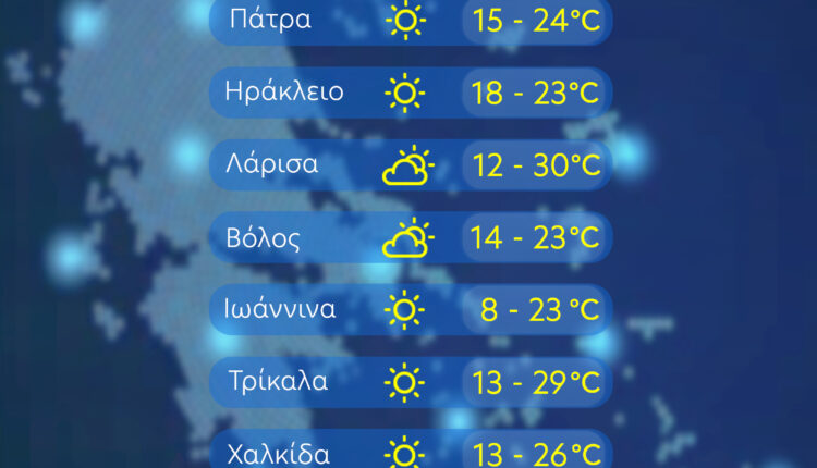 Καιρός: Γενικά αίθριος και μόνο στα νότια τις πρωινές ώρες θα υπάρχουν πρόσκαιρες νεφώσεις με πιθανότητα τοπικών βροχών.