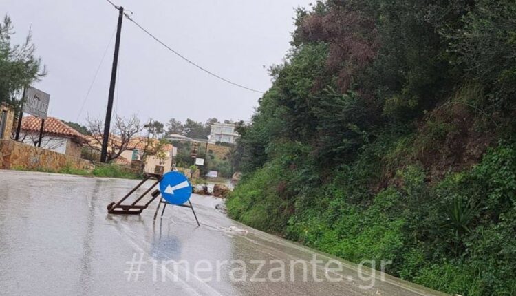 Οι δρόμοι έχουν μετατραπεί σε «ποτάμια», ενώ στο νησί σημειώθηκε και κατολίσθηση στην εθνική οδό Ζακύνθου– Κεριού.