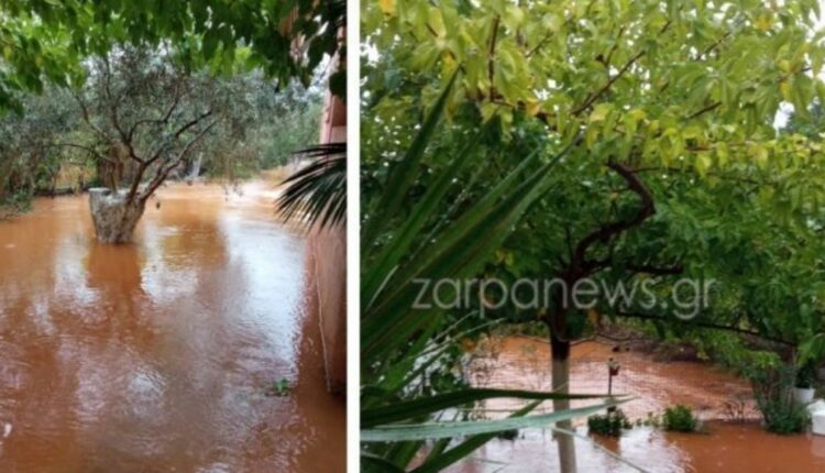 Όλα έγιναν μία λίμνη στον Μουζουρά Χανίων, από την κακοκαιρία που πλήττει την περιοχή.