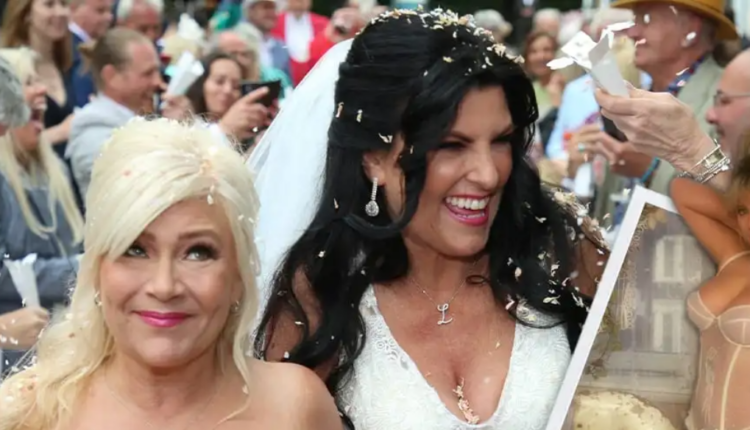 Η βροχή δεν χάλασε το κέφι του ζευγαριού σε μια πολυτελή τελετή που έγινε στο Έσεξ την Παρασκευή, όπως αναφέρει η Daily Mail. Η 56χρονη Σαμάνθα (γεννήθηκε στις 15 Απριλίου 1966) εντυπωσίασε φορώντας ένα νυφικό στράπλες φόρεμα, το οποίο είχε αστραφτερές λεπτομέρειες και πέπλο. Την όλη εμφάνιση ολοκλήρωσε με ασημένια ψηλοτάκουνα παπούτσια.
