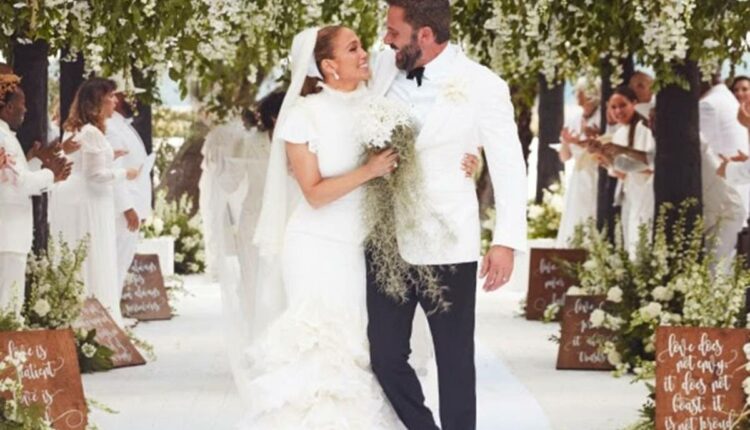 Η διάσημη τραγουδίστρια , όπως είχε ήδη ενημερώσει τους οπαδούς της, μοιράστηκε ρομαντικές λεπτομέρειες από τον γάμο της, στο τελευταίο ενημερωτικό της δελτίο «On TheJ Lo». Μεταξύ των φωτογραφιών, συμπεριέλαβε και μία που την δείχνει με το ένα από τα τρία Ralph Lauren νυφικά της, να χορεύει αργά με τον νέο της σύζυγο Μπεν Άφλεκ, κάτω από μια πινακίδα νέο, η οποία έγραφε: «Mr & Mrs Affleck».