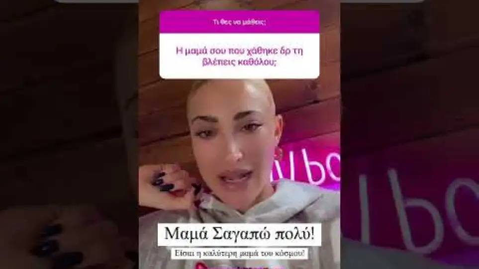 «Η μαμά μου είναι η πιο δυνατή, η πιο υποστηρικτική, η πιο καλή μαμά του κόσμου, δυστυχώς την βλέπω ελάχιστα και με μέτρα και προφυλάξεις λόγω του covid, γιατί έχει καρκίνο και κάνει χημειοθεραπείες», απάντησε η Ιωάννα Τούνη ενώ παράλληλα έγραψε πάνω στο βίντεο: «Μαμά σε αγαπάω πολύ! Είσαι η καλύτερη μαμά του κόσμου. Βλέπει τα στόρι μου».