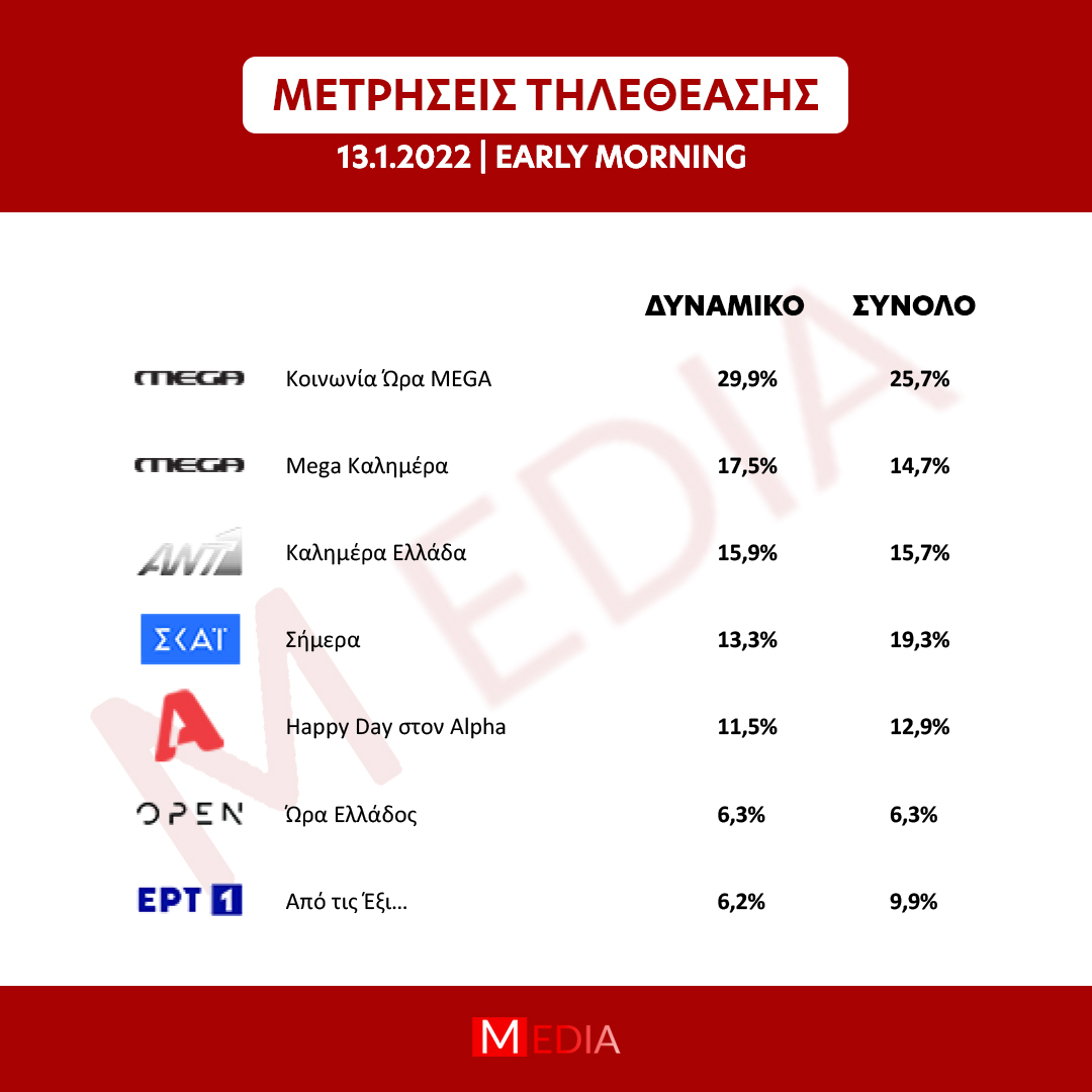Αυτά είναι τα νούμερα τηλεθέασης για την Πέμπτη 13 Ιανουαρίου