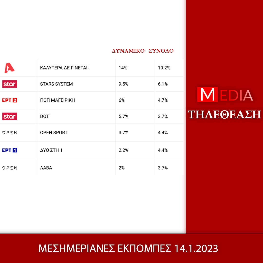 Δείτε τι παρακολούθησαν χθες οι τηλεθεατές