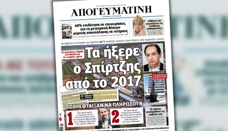 Διαβάστε σήμερα στην «Απογευματινή»: Ανεβαίνει η ένταση του θρήνου – Οι πολίτες ζητούν απαντήσεις στα τεράστια «γιατί» – Το κράτος αναλαμβάνει τις ευθύνες του